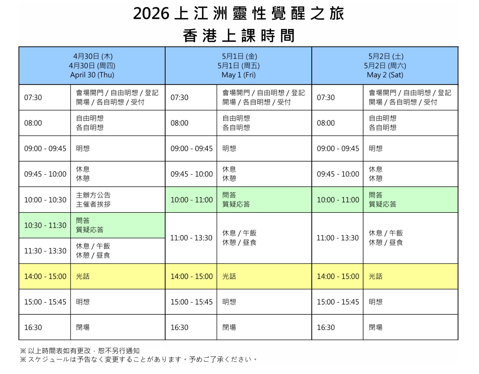 | 香港 | 5/28(水) – 6/1(日) | ・ご案内 ・時間割 |